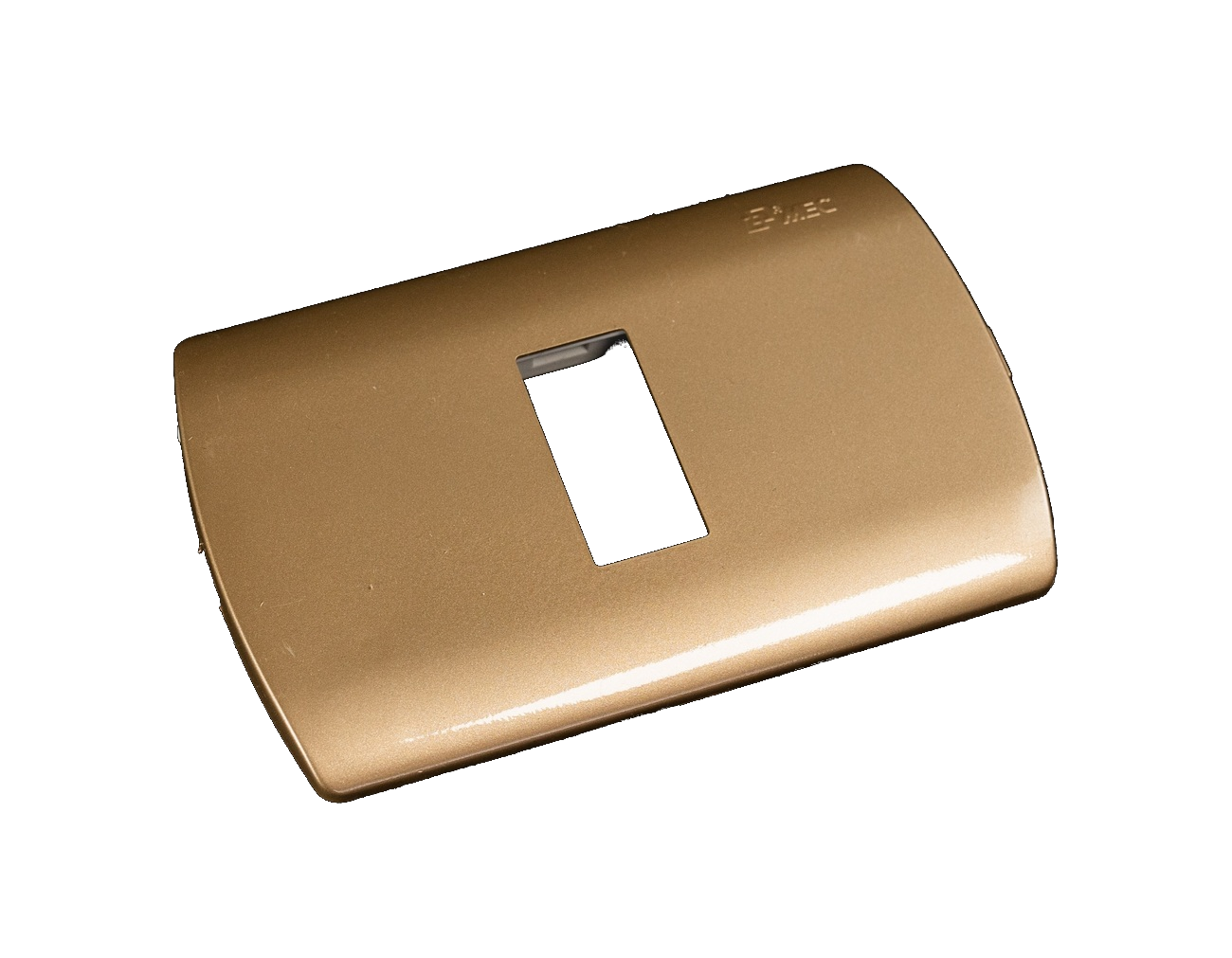 En su acabado Champagne, estas placas son las más solicitadas por su capacidad para mimetizarse con muros de cualquier color, aportando una estética moderna y profesional. Su estructura suele ser modular, permitiendo insertar interruptores, enchufes o tomas de datos según la necesidad de la caja de embutir.